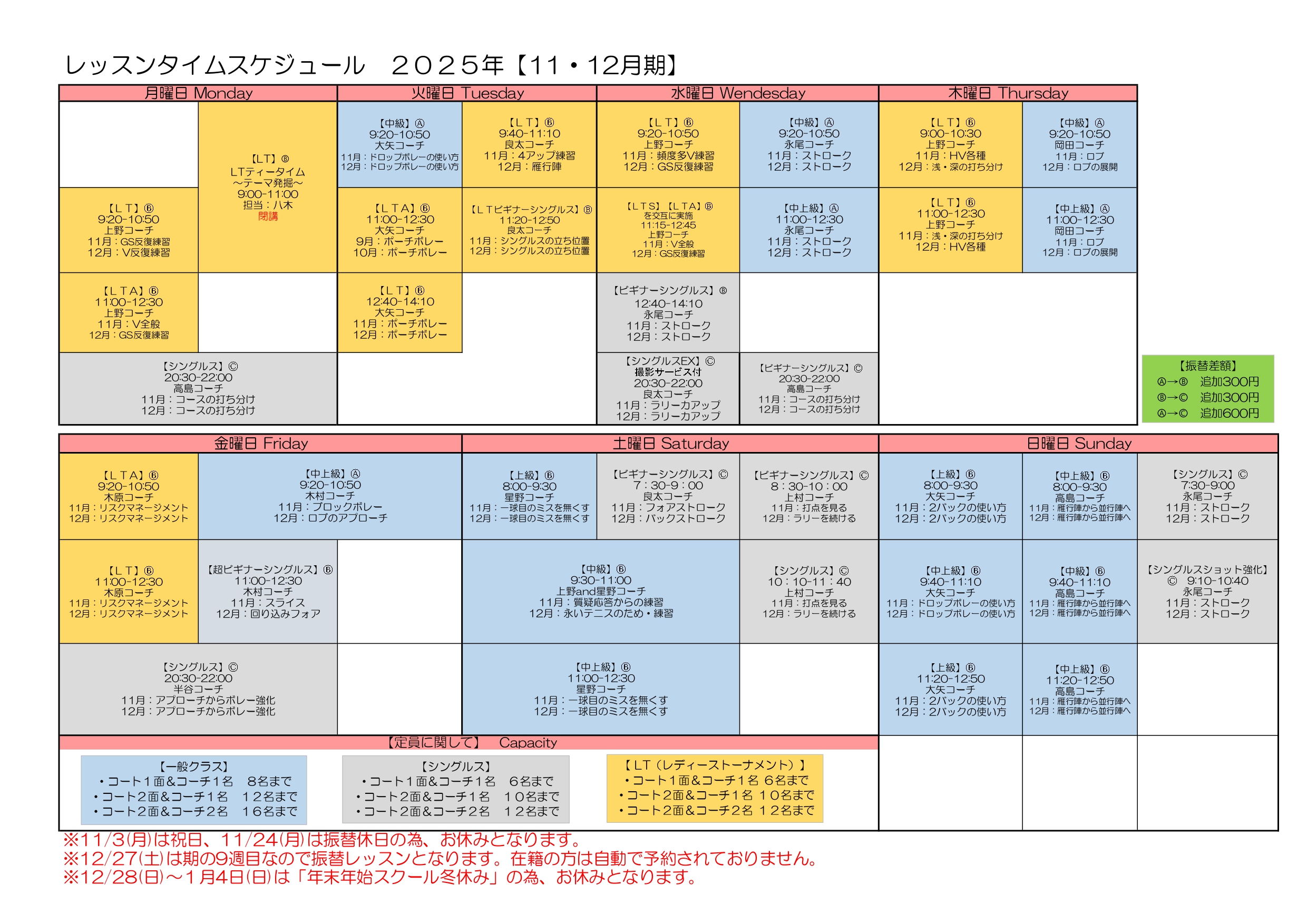 Home › レッスンタイムスケジュール11・12月_page-0001 2025-10-18 レッスンタイムスケジュール11・12月_page-0001 関連記事 【緊急事態宣言】に際しての新型コロナウィルス対策 コーチングスタッフ・フロントスタッフ募集!! シングルスクラス またまた増えます! シングルスクラス増設!! ★2024春の入会キャンペーンのお知らせ レッスンタイムスケジュール11・12月_page-0001